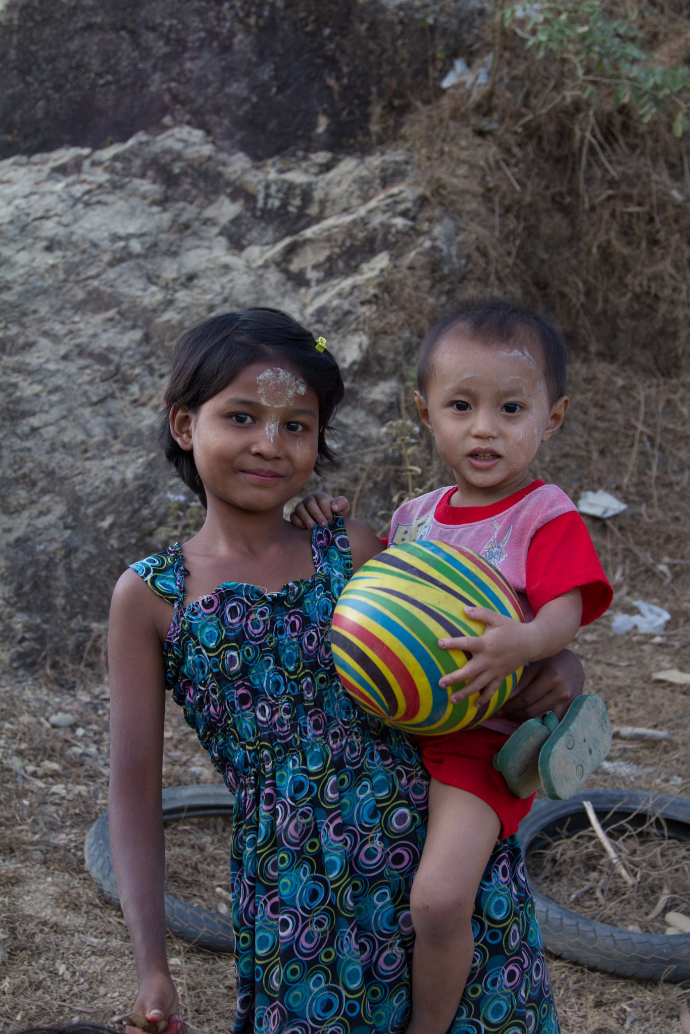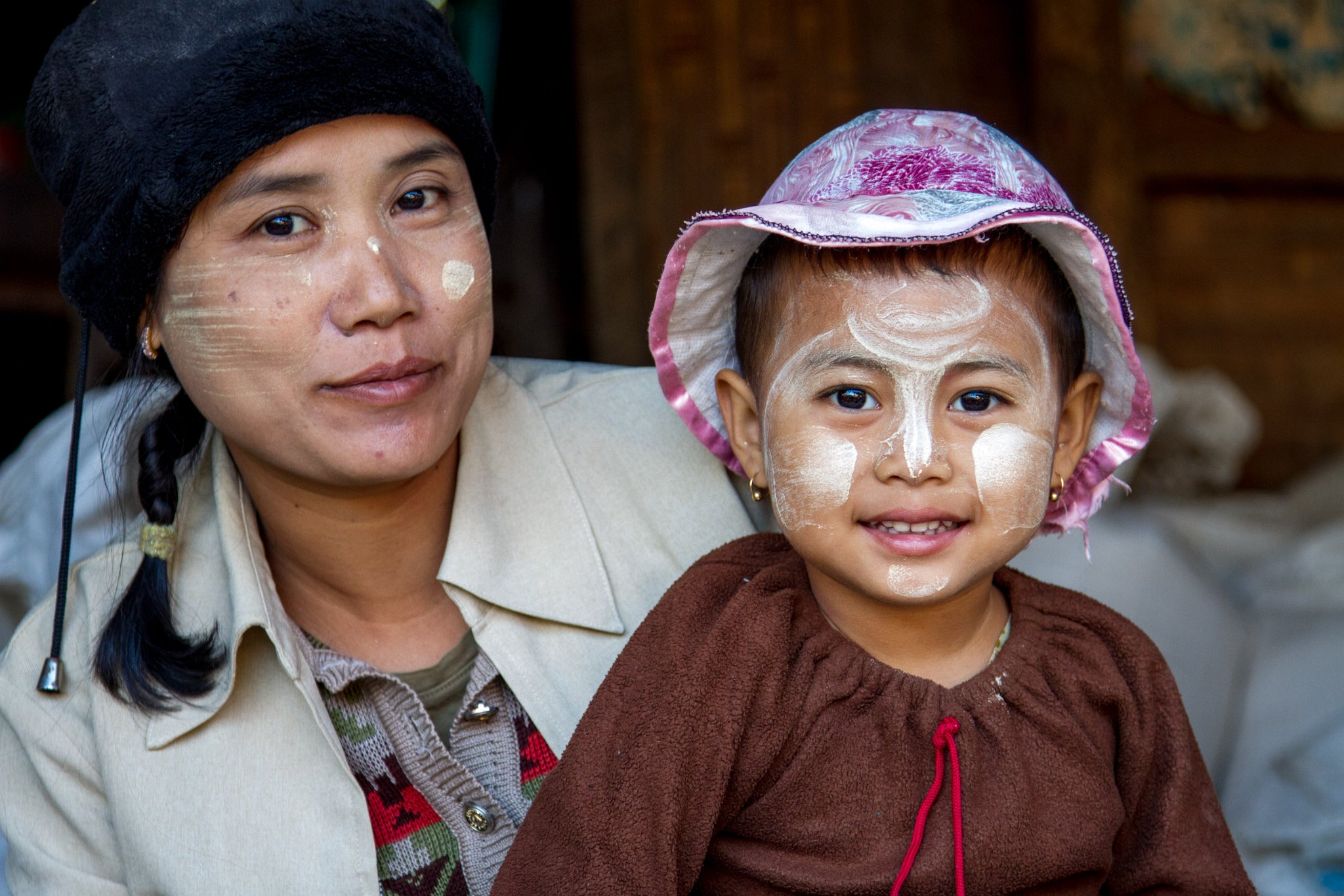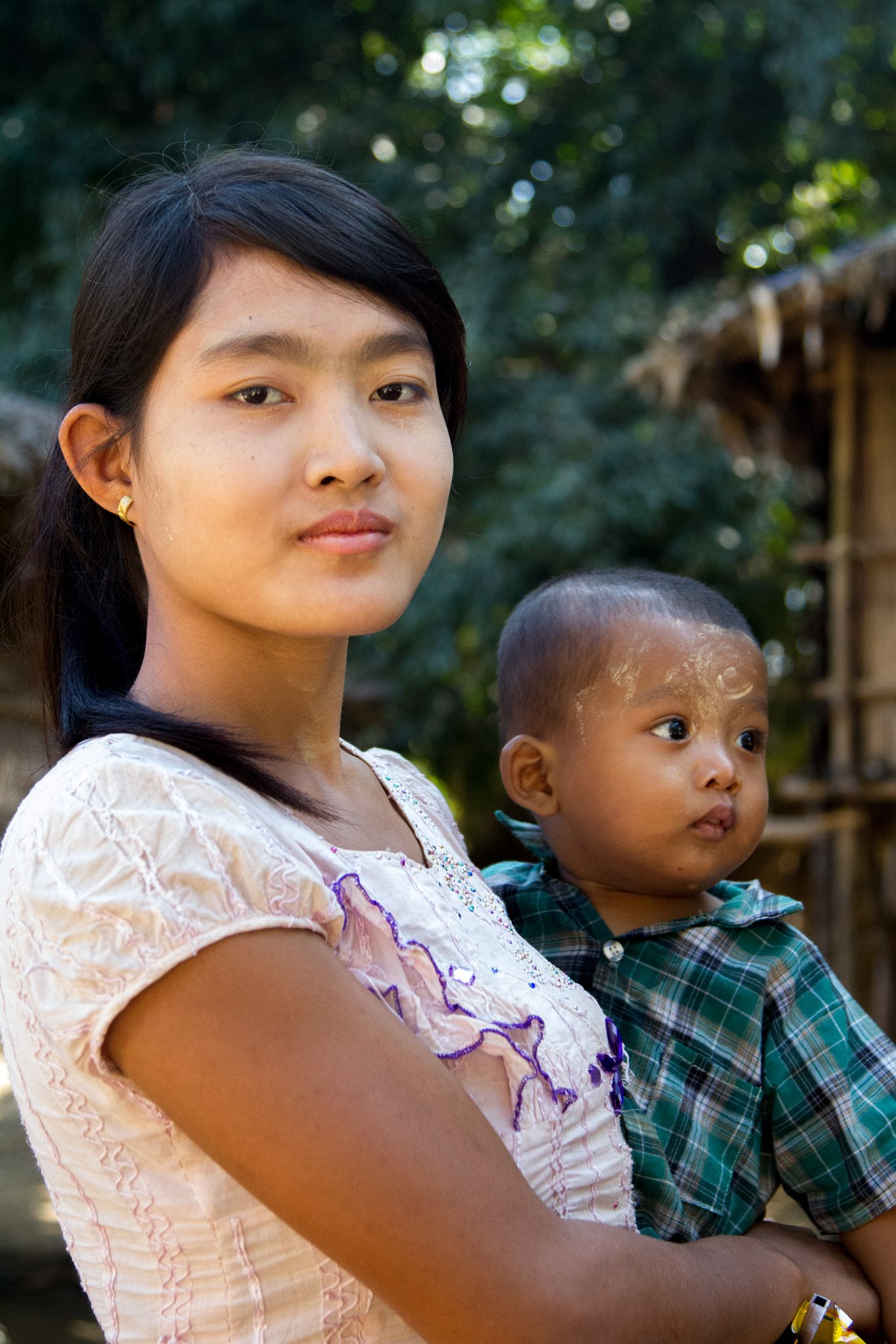 75 Mother with daughter with traditional thanaka on face. Taken at Latitude/Longitude:20.595166/93.262234. km (Map link) |
