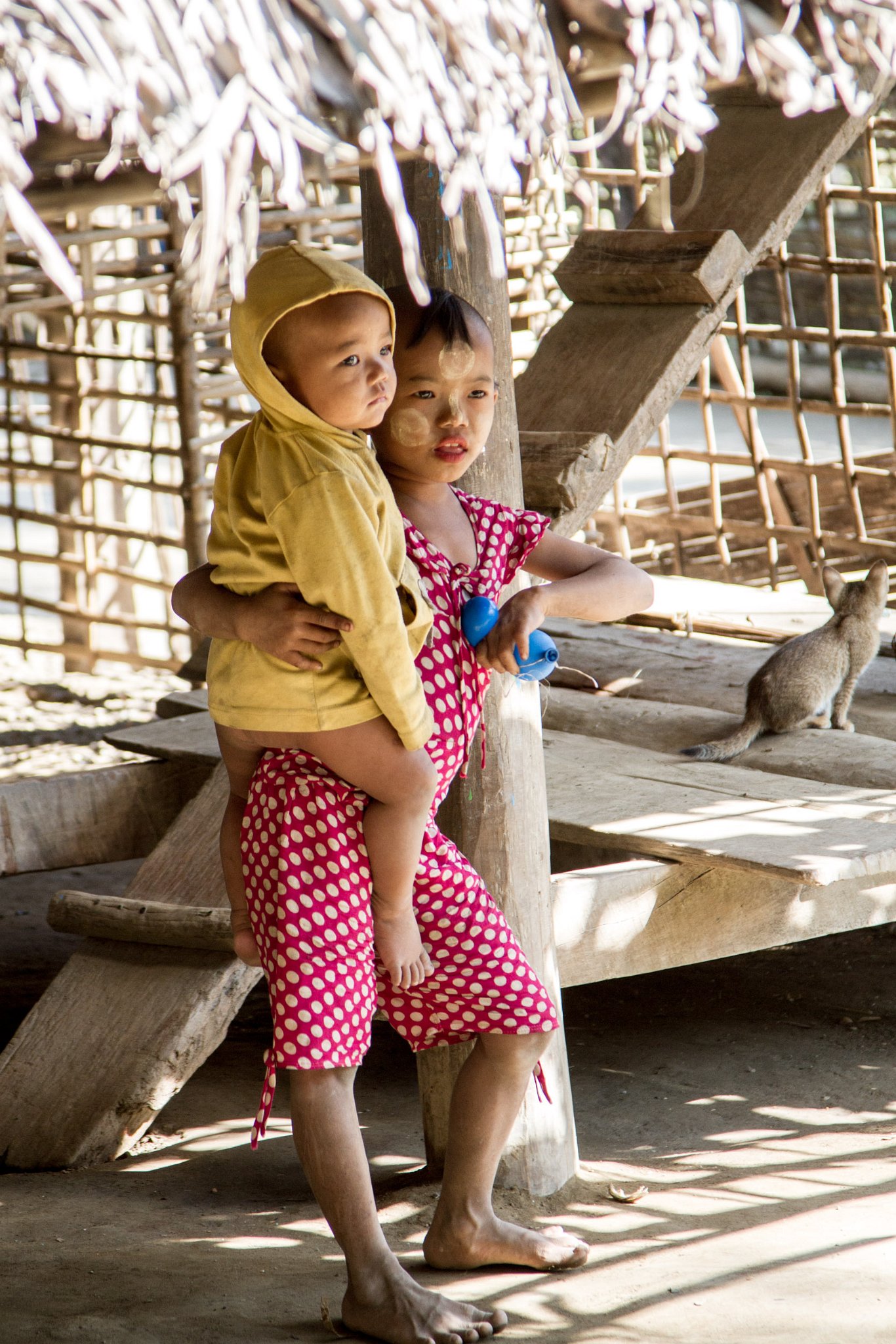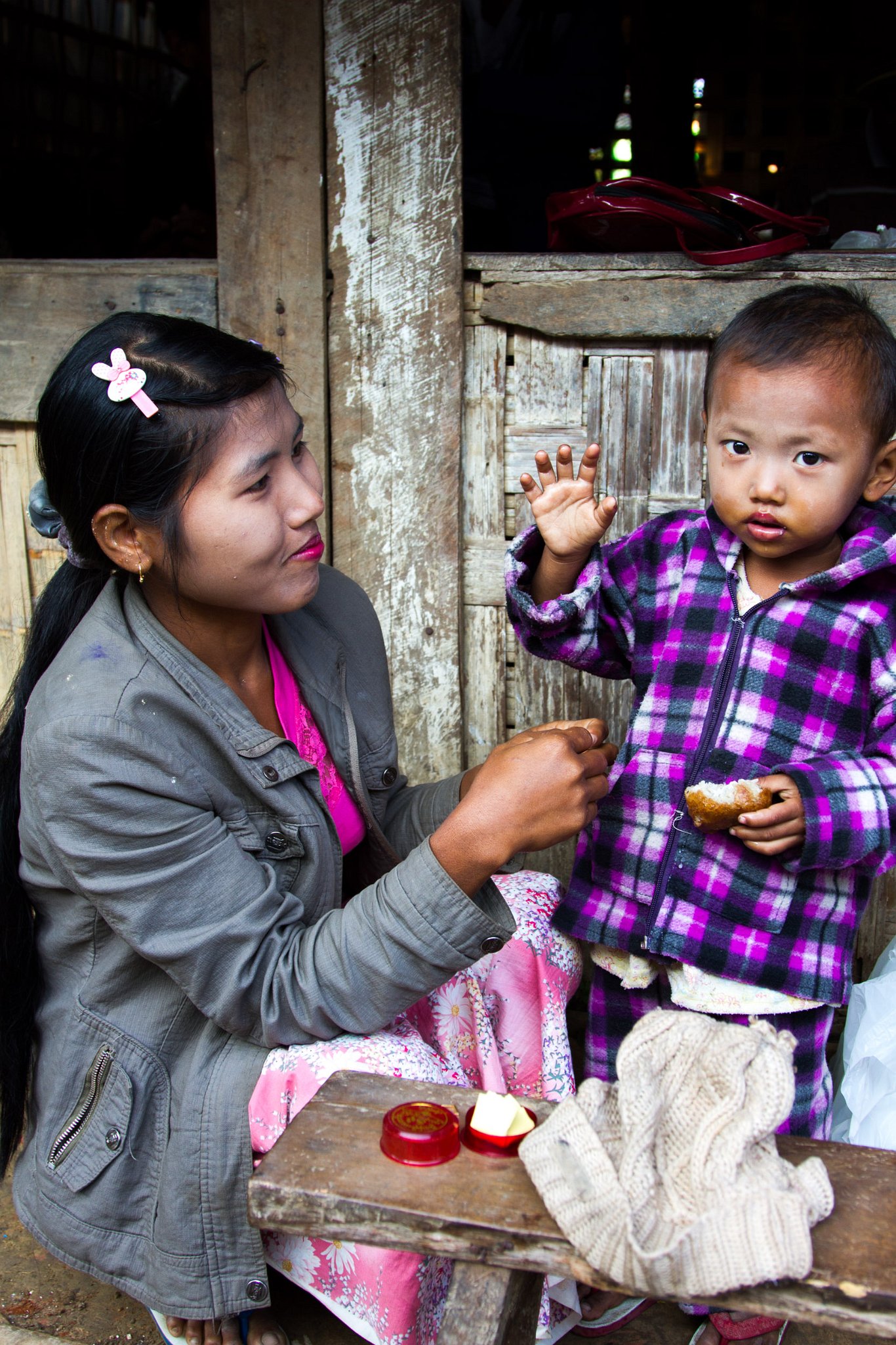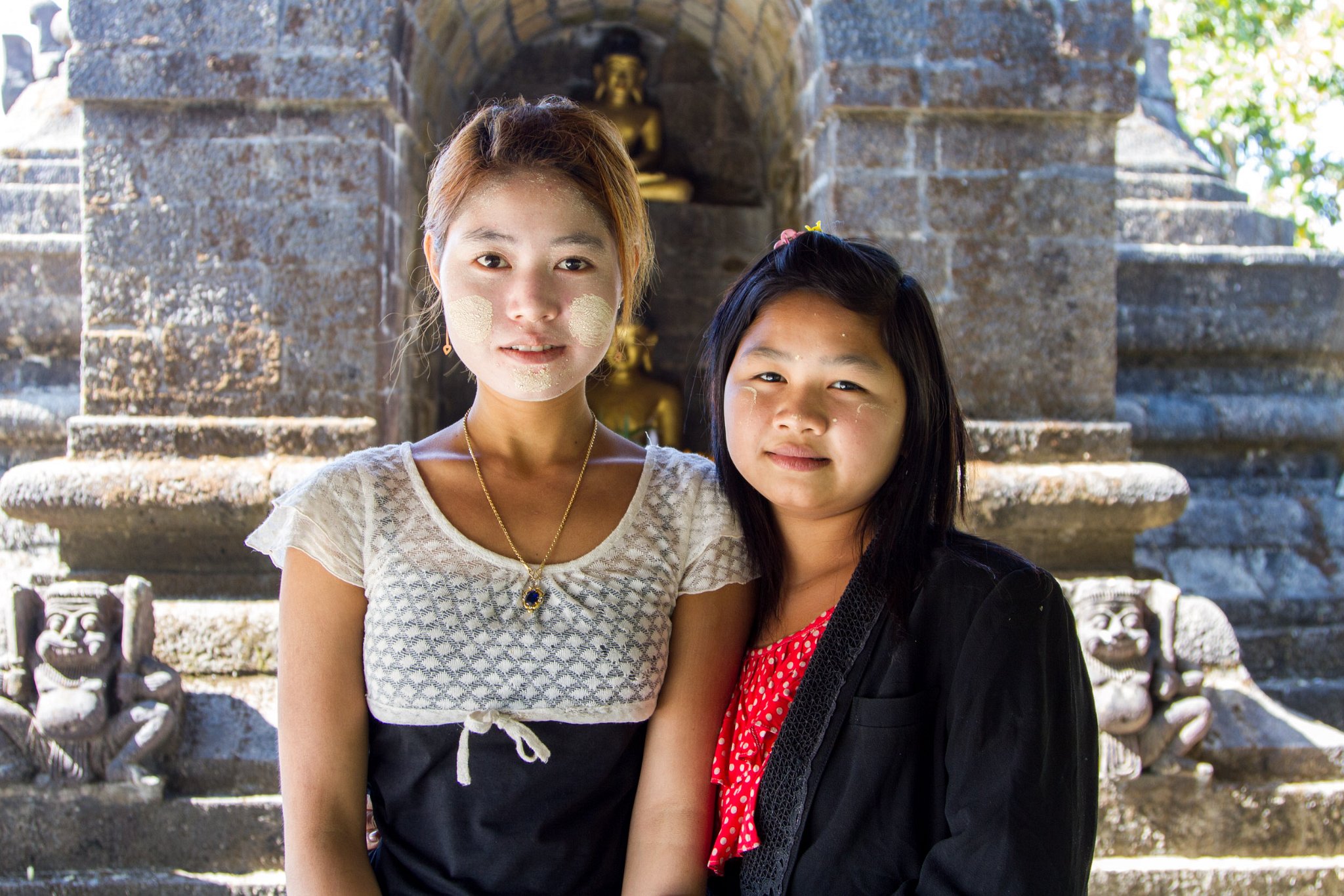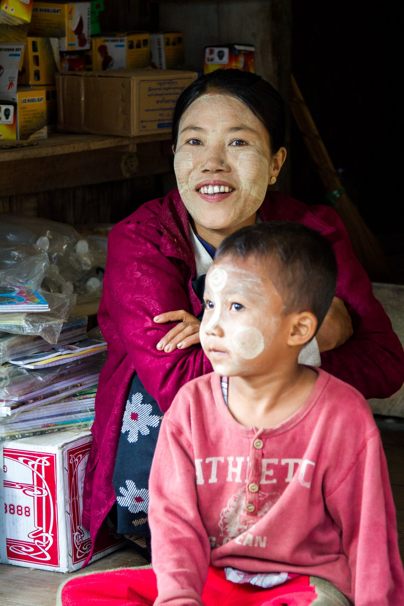 75 Mother with daughter with traditional thanaka on face. Taken at Latitude/Longitude:20.595166/93.262234. km (Map link) |