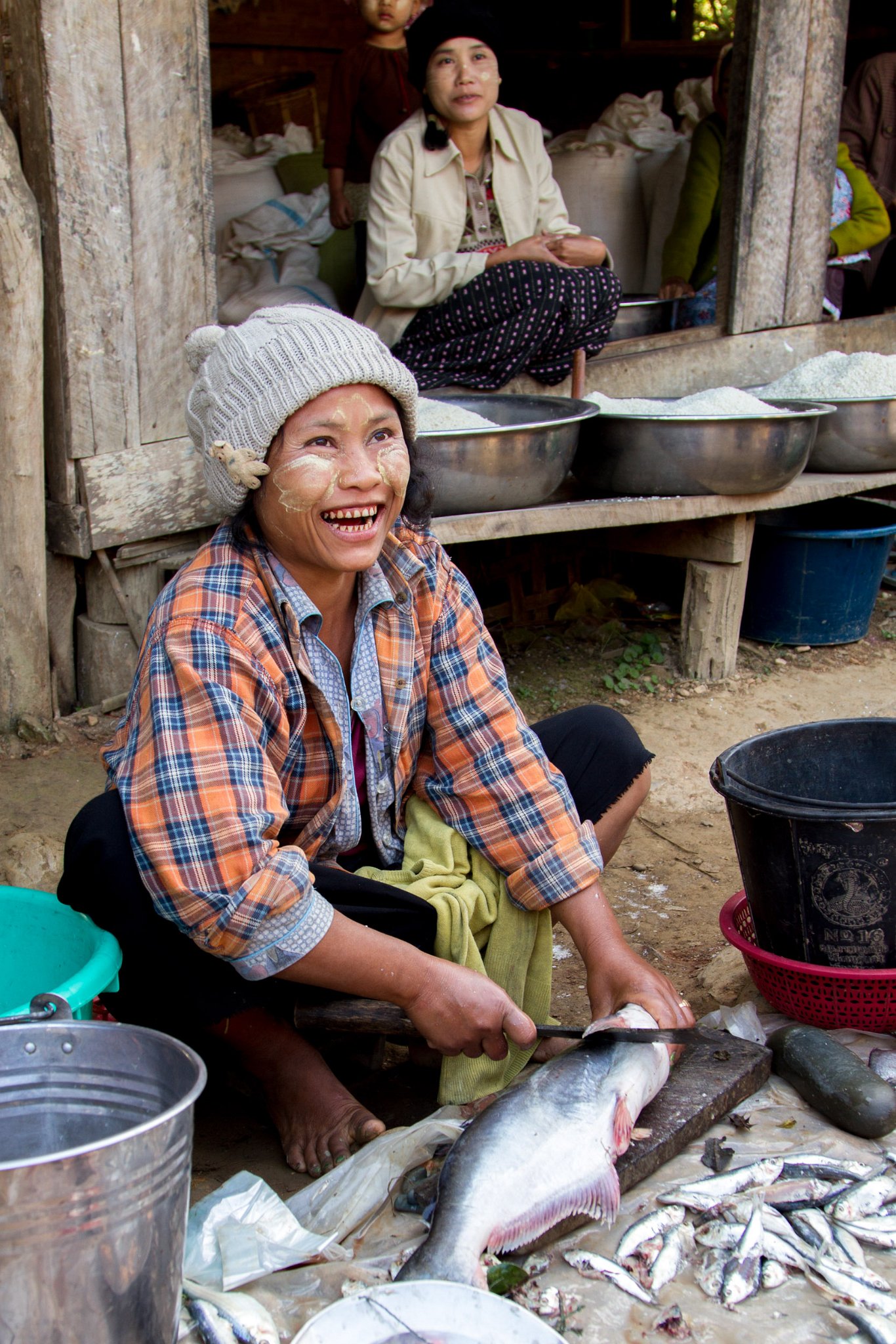 25 Selling Fish at Market near Mrauk-U Taken at Latitude/Longitude:20.595179/93.262236. km (Map link) |