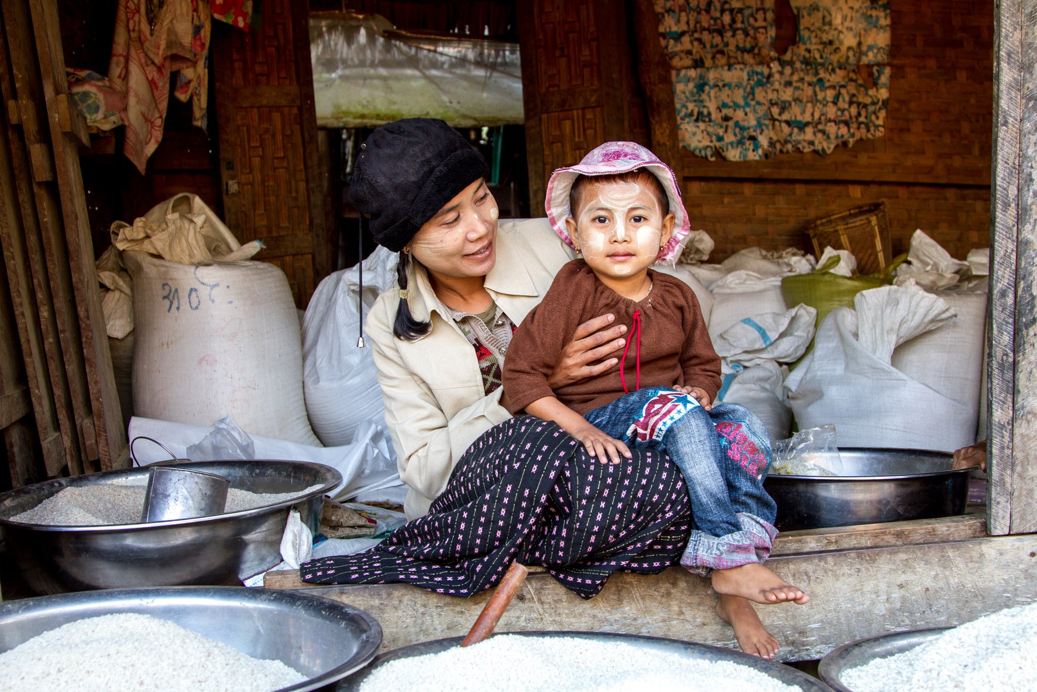 74 Selling Rice at Market near Mrauk-U Taken at Latitude/Longitude:20.595166/93.262234. km (Map link) |