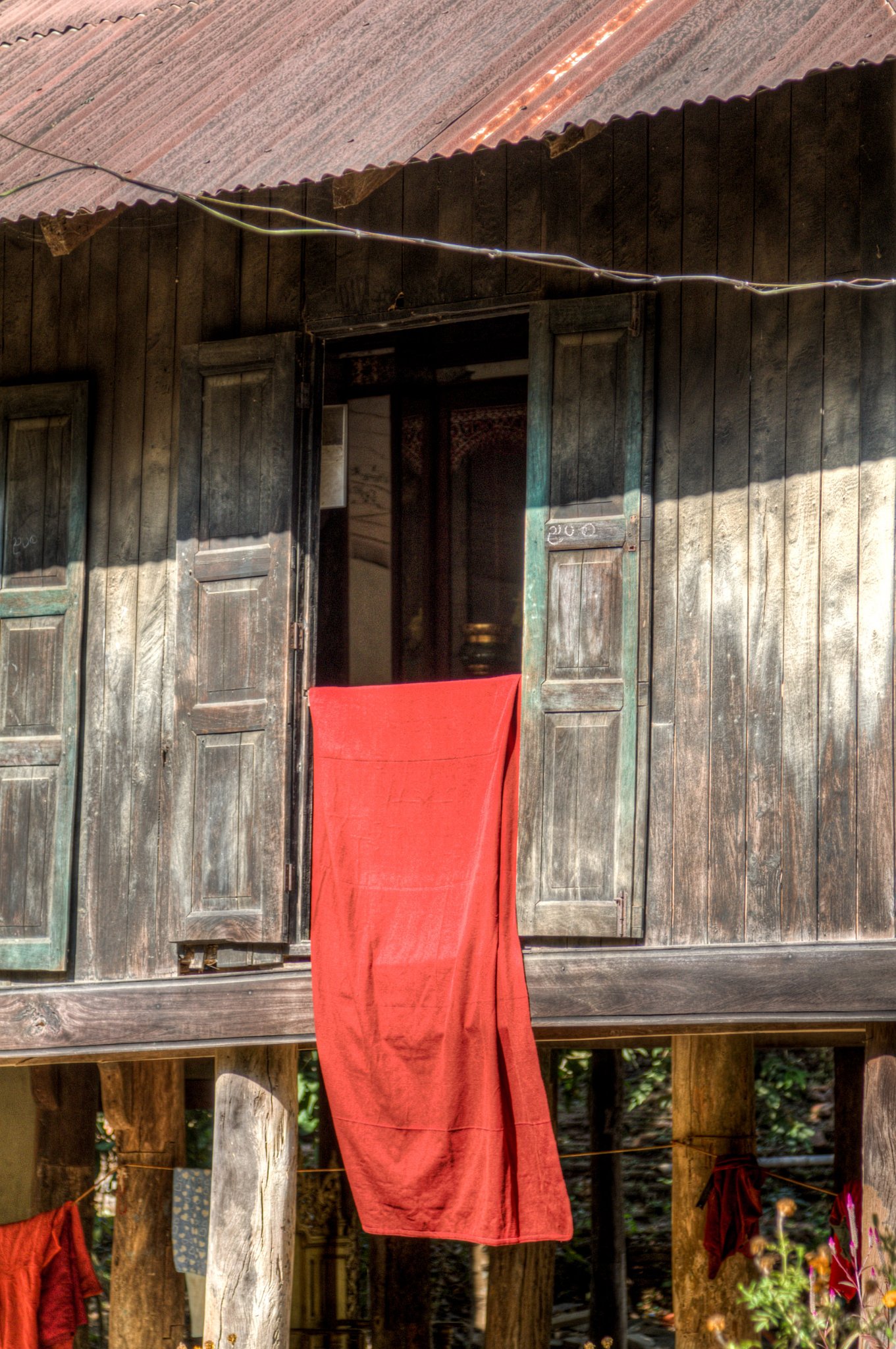 185 Drying laundry Monastery in Mrauk-U |
